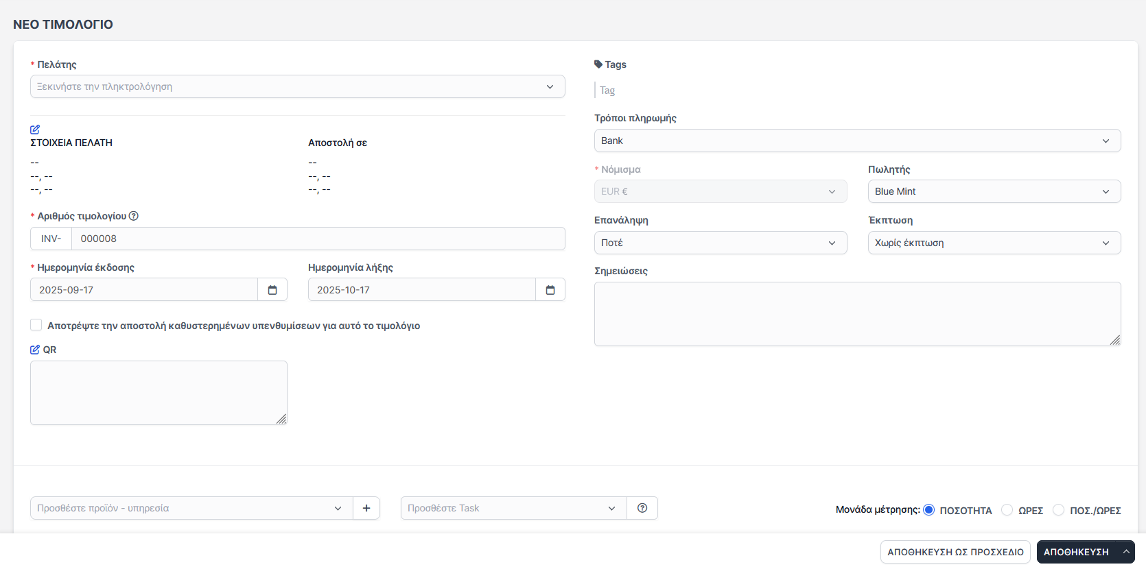 Δημιουργήστε επαγγελματικά και καλαίσθητα τιμολόγια. Επισυνάψτε αρχεία και στείλτε τα απευθείας στους πελάτες σας, συμπεριλαμβανομένου του PDF του τιμολογίου. Δυνατότητα ρύθμισης επαναλαμβανόμενων τιμολογίων.
